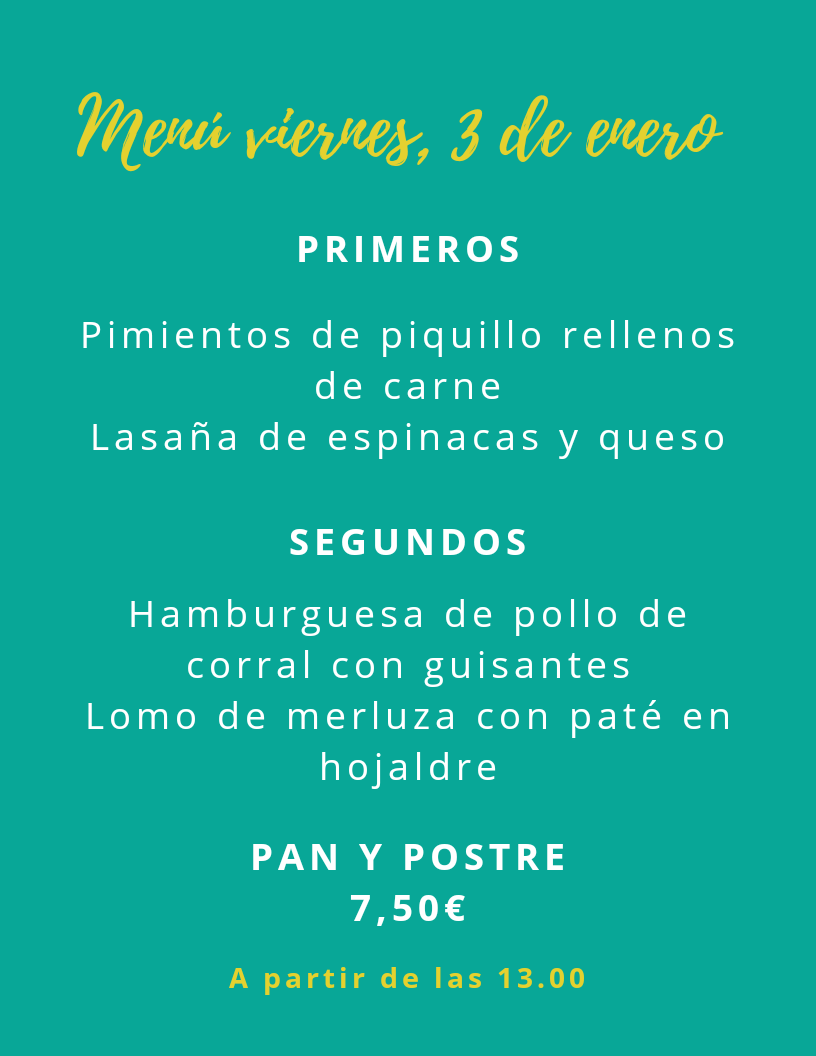 Menú viernes, 3 de enero enero 2, 2020 de Tu Puchero Deja un comentario Comparte esto: Compartir en X (Se abre en una ventana nueva) X Compartir en Facebook (Se abre en una ventana nueva) Facebook Más Compartir en WhatsApp (Se abre en una ventana nueva) WhatsApp Me gusta Cargando...