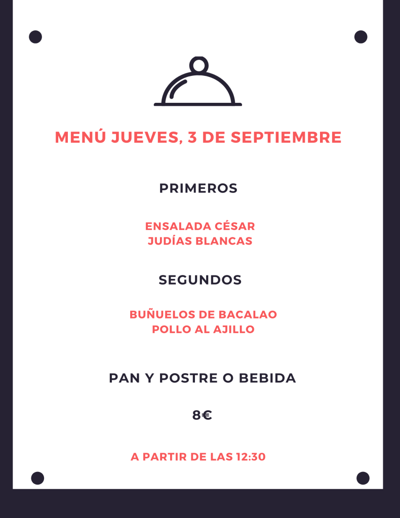 Menú jueves, 3 de septiembre septiembre 2, 2020 de Tu Puchero Deja un comentario Comparte esto: Compartir en X (Se abre en una ventana nueva) X Compartir en Facebook (Se abre en una ventana nueva) Facebook Más Compartir en WhatsApp (Se abre en una ventana nueva) WhatsApp Me gusta Cargando...