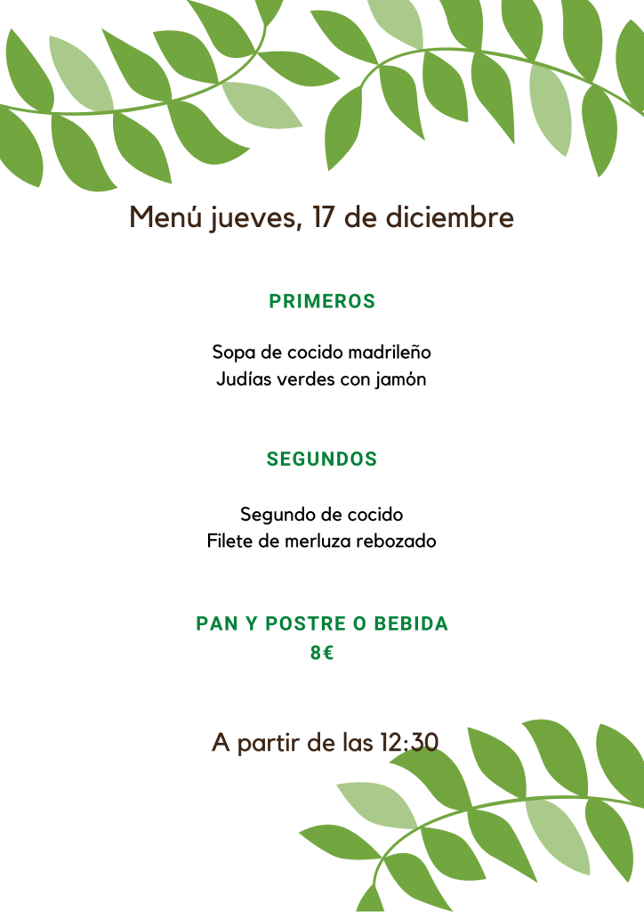 Menú jueves, 17 de diciembre diciembre 16, 2020 de Tu Puchero Deja un comentario Comparte esto: Compartir en X (Se abre en una ventana nueva) X Compartir en Facebook (Se abre en una ventana nueva) Facebook Más Compartir en WhatsApp (Se abre en una ventana nueva) WhatsApp Me gusta Cargando...