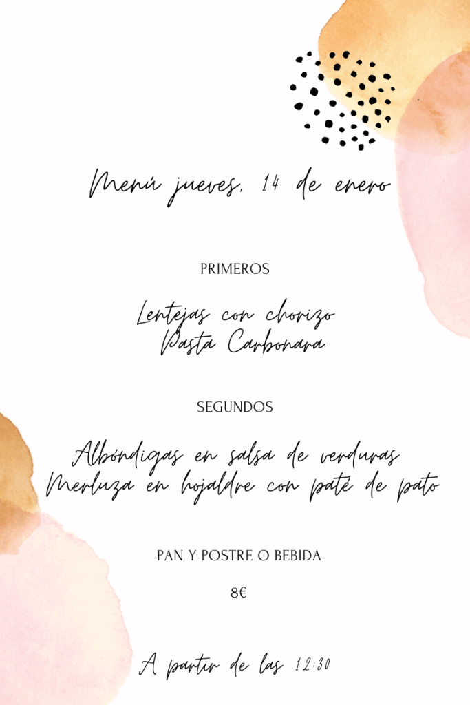Menú jueves, 14 de enero enero 13, 2021 de Tu Puchero Deja un comentario Comparte esto: Compartir en X (Se abre en una ventana nueva) X Compartir en Facebook (Se abre en una ventana nueva) Facebook Más Compartir en WhatsApp (Se abre en una ventana nueva) WhatsApp Me gusta Cargando...
