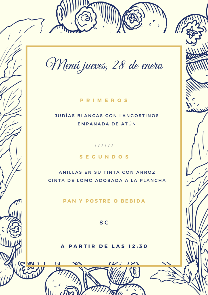 Menú jueves, 28 de enero enero 27, 2021 de Tu Puchero Deja un comentario Comparte esto: Compartir en X (Se abre en una ventana nueva) X Compartir en Facebook (Se abre en una ventana nueva) Facebook Más Compartir en WhatsApp (Se abre en una ventana nueva) WhatsApp Me gusta Cargando...