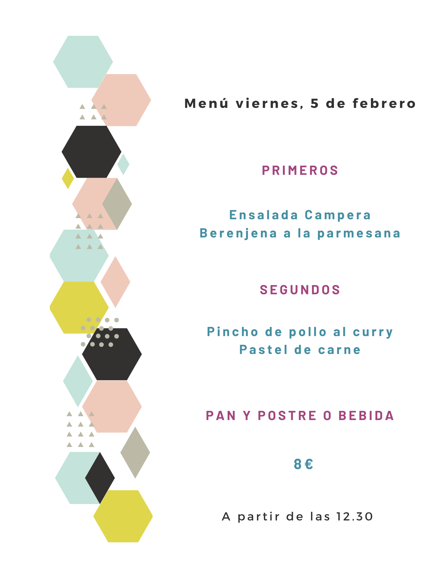 Menú viernes, 5 de febrero febrero 4, 2021 de Tu Puchero Deja un comentario Comparte esto: Compartir en X (Se abre en una ventana nueva) X Compartir en Facebook (Se abre en una ventana nueva) Facebook Más Compartir en WhatsApp (Se abre en una ventana nueva) WhatsApp Me gusta Cargando...