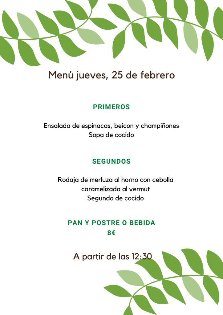 Menú jueves, 25 de febrero febrero 24, 2021 de Tu Puchero Deja un comentario Comparte esto: Compartir en X (Se abre en una ventana nueva) X Compartir en Facebook (Se abre en una ventana nueva) Facebook Más Compartir en WhatsApp (Se abre en una ventana nueva) WhatsApp Me gusta Cargando...