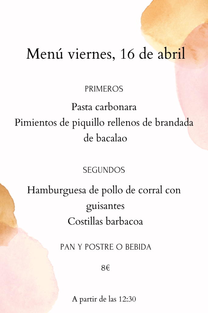 Menú viernes, 16 de abril abril 15, 2021 de Tu Puchero Deja un comentario Comparte esto: Compartir en X (Se abre en una ventana nueva) X Compartir en Facebook (Se abre en una ventana nueva) Facebook Más Compartir en WhatsApp (Se abre en una ventana nueva) WhatsApp Me gusta Cargando...