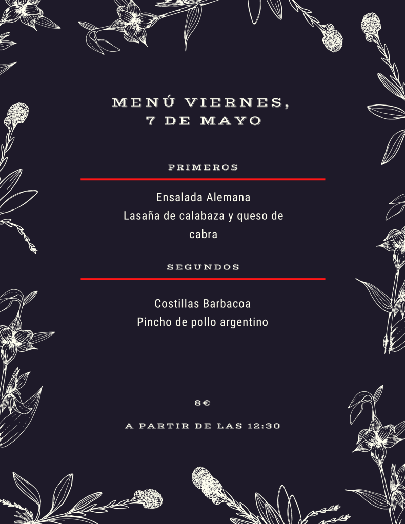 Menú viernes, 7 de mayo mayo 6, 2021 de Tu Puchero Deja un comentario Comparte esto: Compartir en X (Se abre en una ventana nueva) X Compartir en Facebook (Se abre en una ventana nueva) Facebook Más Compartir en WhatsApp (Se abre en una ventana nueva) WhatsApp Me gusta Cargando...