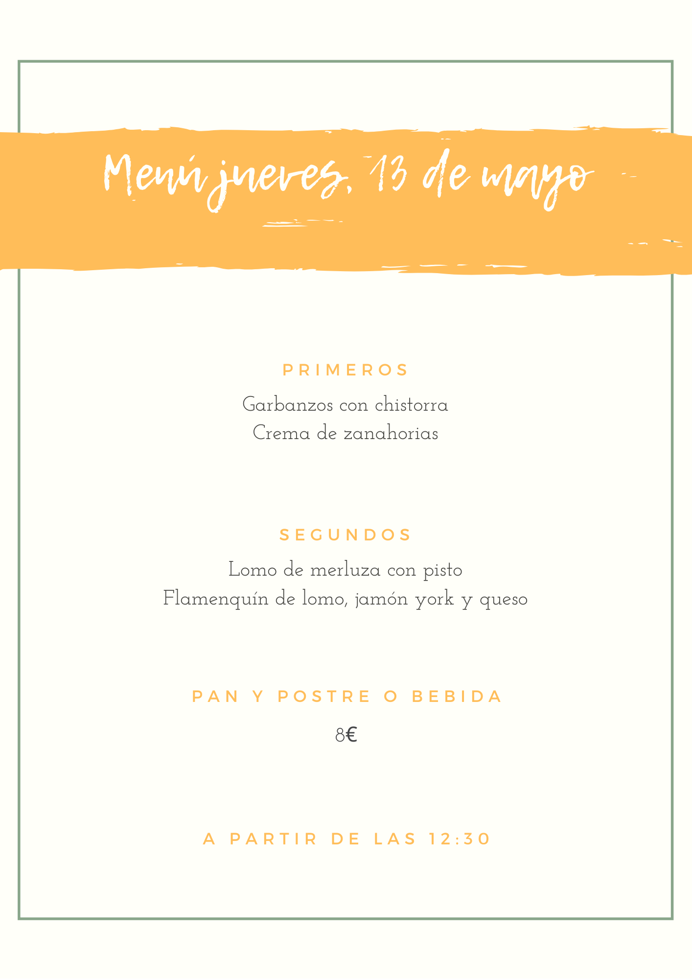 Menú jueves, 13 de mayo mayo 12, 2021 de Tu Puchero Deja un comentario Comparte esto: Compartir en X (Se abre en una ventana nueva) X Compartir en Facebook (Se abre en una ventana nueva) Facebook Más Compartir en WhatsApp (Se abre en una ventana nueva) WhatsApp Me gusta Cargando...