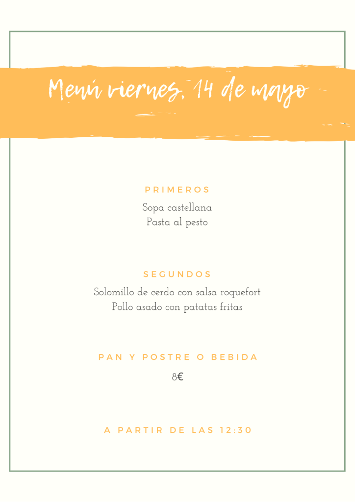 Menú viernes, 14 de mayo mayo 13, 2021 de Tu Puchero Deja un comentario Comparte esto: Compartir en X (Se abre en una ventana nueva) X Compartir en Facebook (Se abre en una ventana nueva) Facebook Más Compartir en WhatsApp (Se abre en una ventana nueva) WhatsApp Me gusta Cargando...