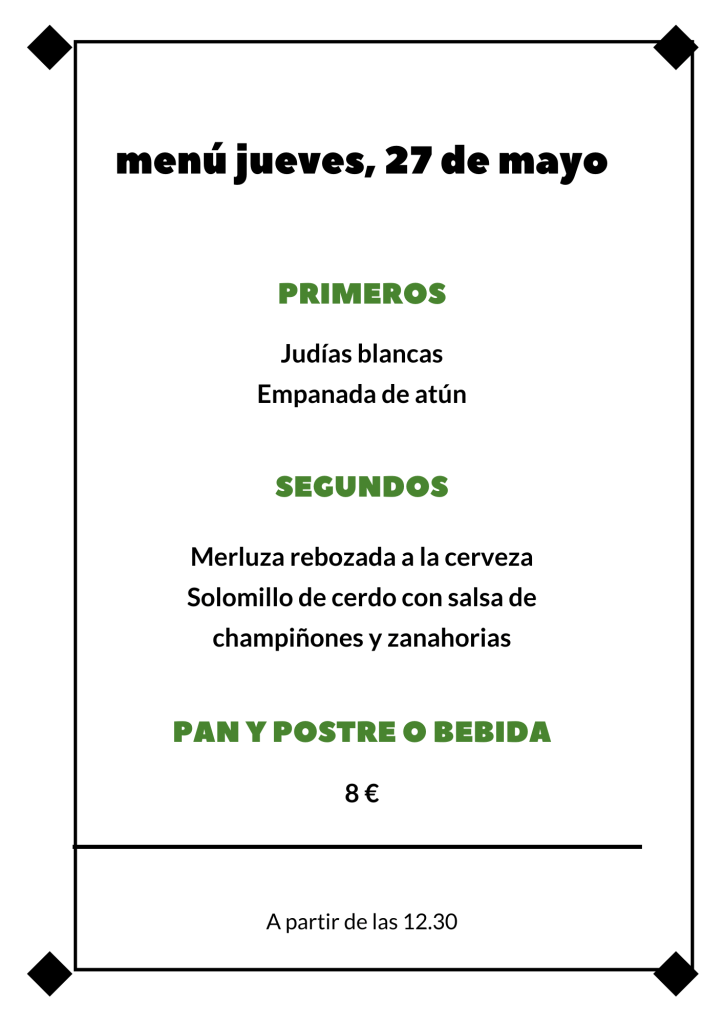 Menú jueves, 27 de mayo mayo 26, 2021 de Tu Puchero Deja un comentario Comparte esto: Compartir en X (Se abre en una ventana nueva) X Compartir en Facebook (Se abre en una ventana nueva) Facebook Más Compartir en WhatsApp (Se abre en una ventana nueva) WhatsApp Me gusta Cargando...