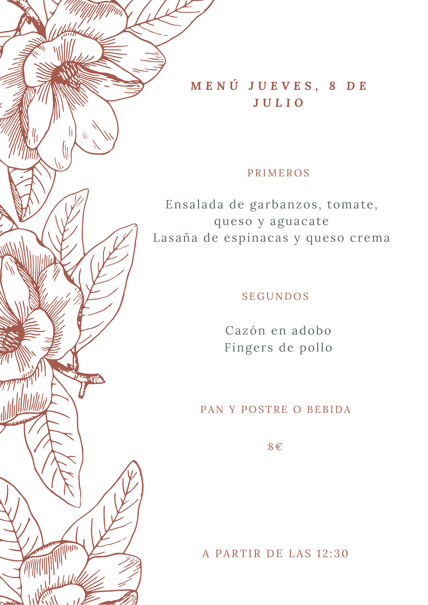 Menú jueves, 8 de julio julio 7, 2021 de Tu Puchero Deja un comentario Comparte esto: Compartir en X (Se abre en una ventana nueva) X Compartir en Facebook (Se abre en una ventana nueva) Facebook Más Compartir en WhatsApp (Se abre en una ventana nueva) WhatsApp Me gusta Cargando...