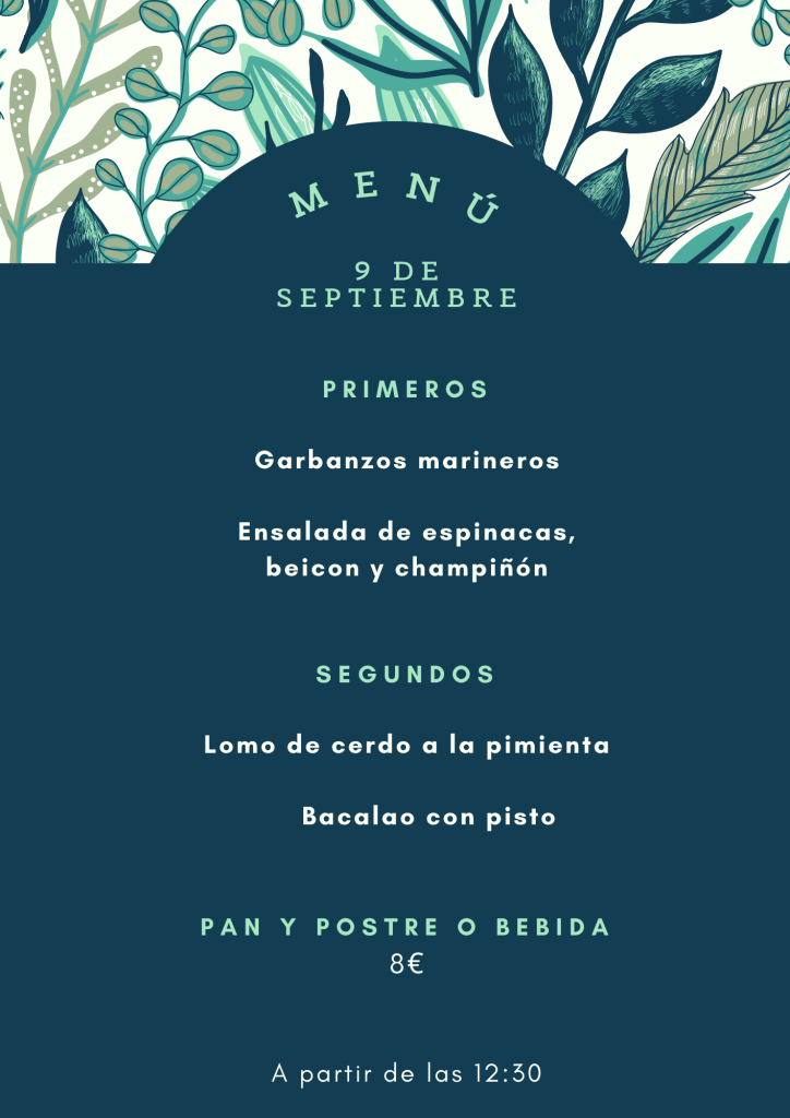 Menú jueves, 9 de septiembre septiembre 8, 2021 de Tu Puchero Deja un comentario Comparte esto: Compartir en X (Se abre en una ventana nueva) X Compartir en Facebook (Se abre en una ventana nueva) Facebook Más Compartir en WhatsApp (Se abre en una ventana nueva) WhatsApp Me gusta Cargando...
