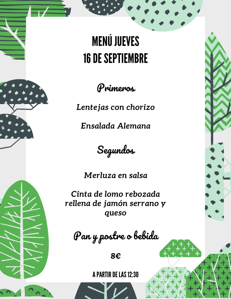 Menú jueves, 16 de septiembre septiembre 15, 2021 de Tu Puchero Deja un comentario Comparte esto: Compartir en X (Se abre en una ventana nueva) X Compartir en Facebook (Se abre en una ventana nueva) Facebook Más Compartir en WhatsApp (Se abre en una ventana nueva) WhatsApp Me gusta Cargando...