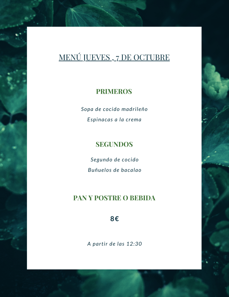 Menú jueves, 7 de octubre octubre 6, 2021 de Tu Puchero Deja un comentario Comparte esto: Compartir en X (Se abre en una ventana nueva) X Compartir en Facebook (Se abre en una ventana nueva) Facebook Más Compartir en WhatsApp (Se abre en una ventana nueva) WhatsApp Me gusta Cargando...