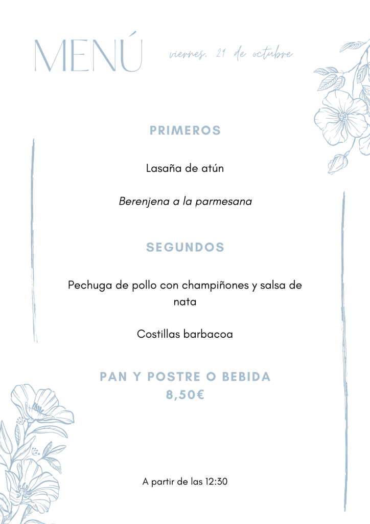 Menú viernes, 29 de octubre octubre 28, 2021 de Tu Puchero Deja un comentario Comparte esto: Compartir en X (Se abre en una ventana nueva) X Compartir en Facebook (Se abre en una ventana nueva) Facebook Más Compartir en WhatsApp (Se abre en una ventana nueva) WhatsApp Me gusta Cargando...