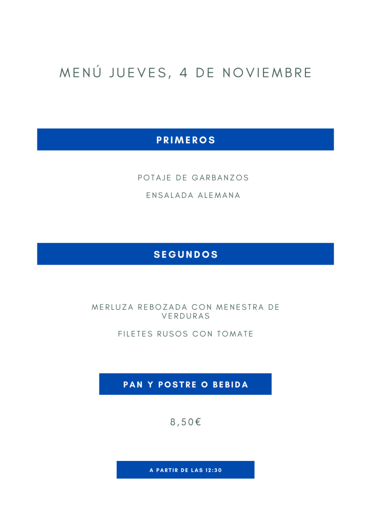 Menú jueves, 4 de noviembre noviembre 3, 2021 de Tu Puchero Deja un comentario Comparte esto: Compartir en X (Se abre en una ventana nueva) X Compartir en Facebook (Se abre en una ventana nueva) Facebook Más Compartir en WhatsApp (Se abre en una ventana nueva) WhatsApp Me gusta Cargando...