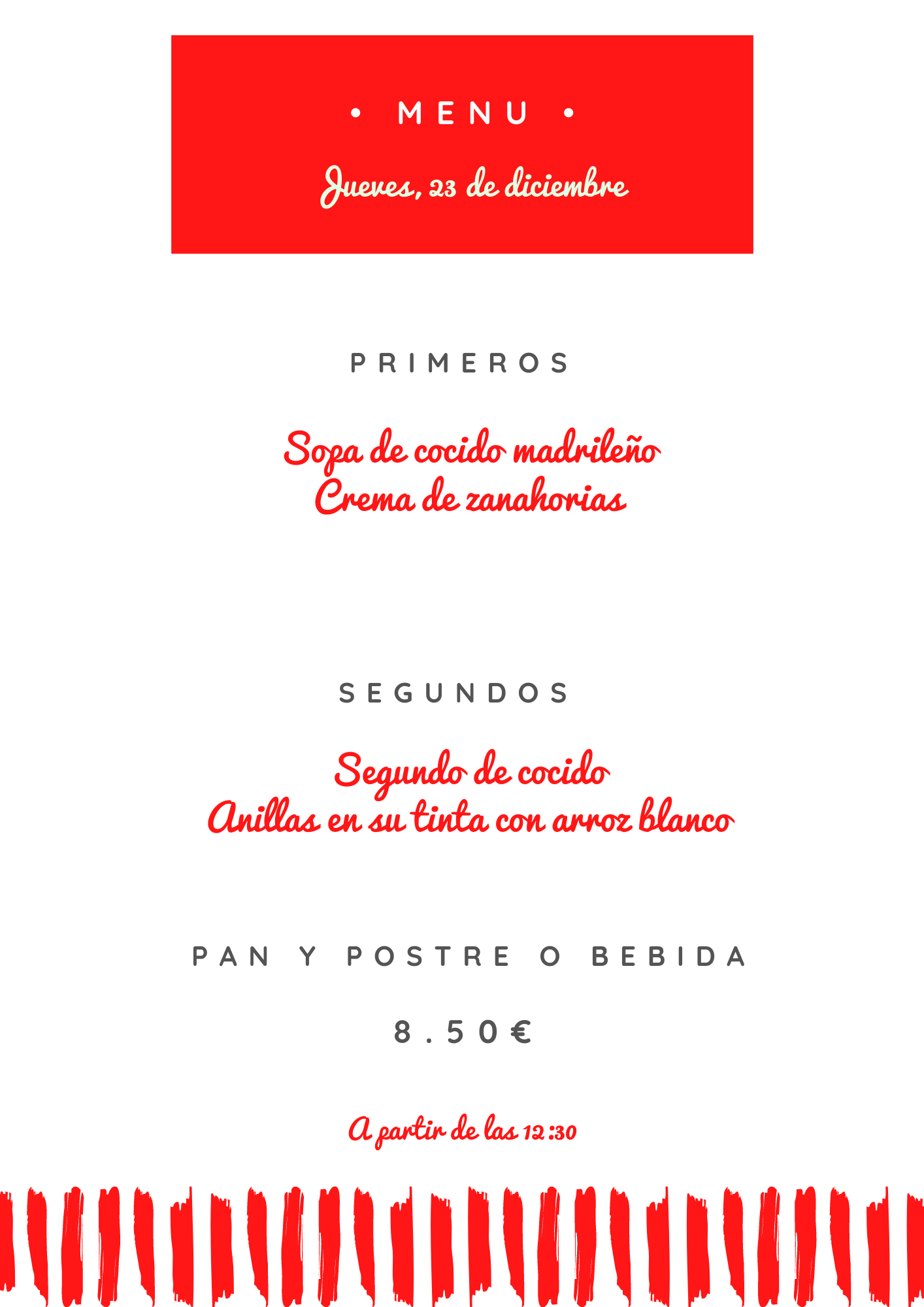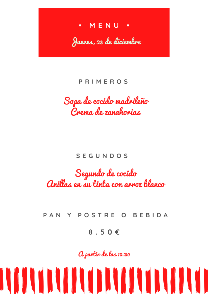 Menú jueves, 23 de diciembre diciembre 22, 2021 de Tu Puchero Deja un comentario Comparte esto: Compartir en X (Se abre en una ventana nueva) X Compartir en Facebook (Se abre en una ventana nueva) Facebook Más Compartir en WhatsApp (Se abre en una ventana nueva) WhatsApp Me gusta Cargando...
