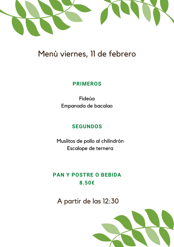 Menú viernes, 11 de Febrero febrero 10, 2022 de Tu Puchero Deja un comentario Comparte esto: Compartir en X (Se abre en una ventana nueva) X Compartir en Facebook (Se abre en una ventana nueva) Facebook Más Compartir en WhatsApp (Se abre en una ventana nueva) WhatsApp Me gusta Cargando...