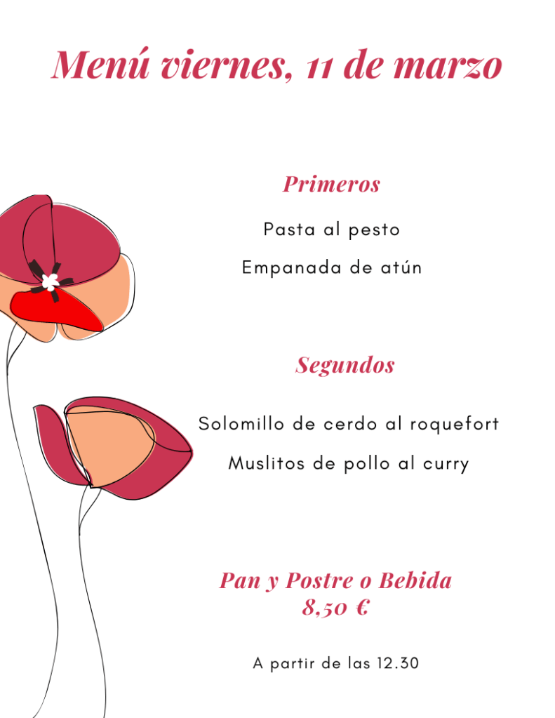Menú viernes, 11 de Marzo marzo 10, 2022 de Tu Puchero Deja un comentario Comparte esto: Compartir en X (Se abre en una ventana nueva) X Compartir en Facebook (Se abre en una ventana nueva) Facebook Más Compartir en WhatsApp (Se abre en una ventana nueva) WhatsApp Me gusta Cargando...