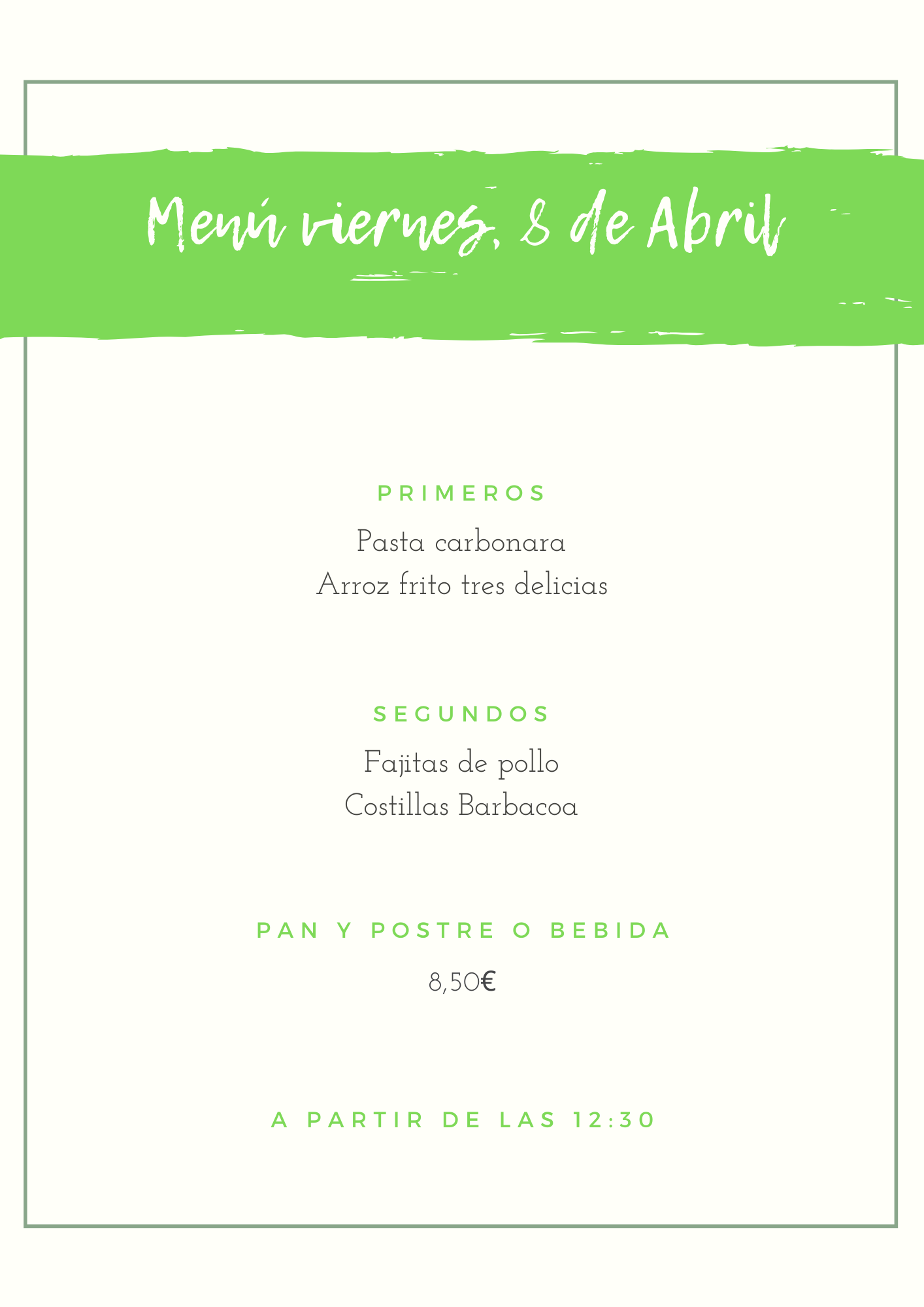Menú viernes, 8 de Abril abril 7, 2022 de Tu Puchero Deja un comentario Comparte esto: Compartir en X (Se abre en una ventana nueva) X Compartir en Facebook (Se abre en una ventana nueva) Facebook Más Compartir en WhatsApp (Se abre en una ventana nueva) WhatsApp Me gusta Cargando...
