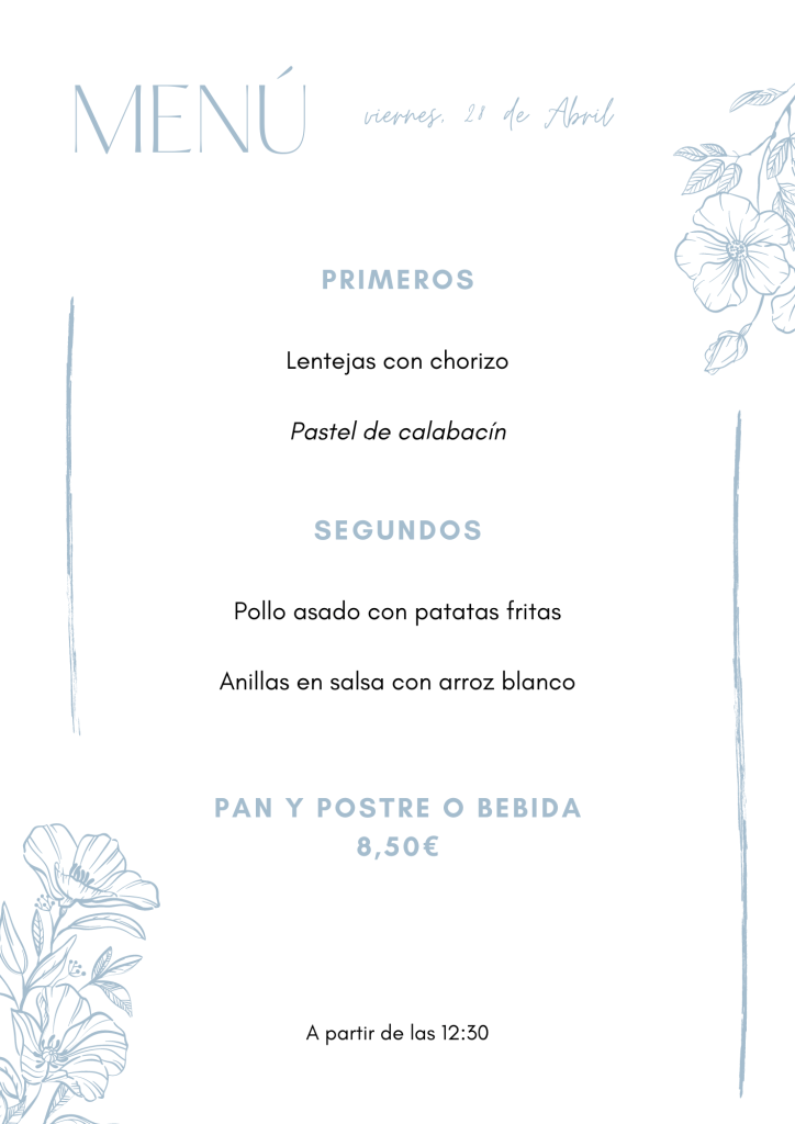 Menú jueves, 28 de Abril abril 27, 2022 de Tu Puchero Deja un comentario Comparte esto: Compartir en X (Se abre en una ventana nueva) X Compartir en Facebook (Se abre en una ventana nueva) Facebook Más Compartir en WhatsApp (Se abre en una ventana nueva) WhatsApp Me gusta Cargando...