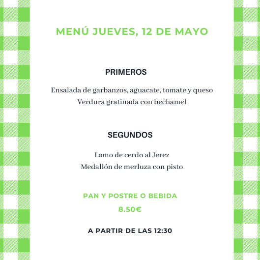 Menú jueves, 12 de Mayo mayo 11, 2022 de Tu Puchero Deja un comentario Comparte esto: Compartir en X (Se abre en una ventana nueva) X Compartir en Facebook (Se abre en una ventana nueva) Facebook Más Compartir en WhatsApp (Se abre en una ventana nueva) WhatsApp Me gusta Cargando...