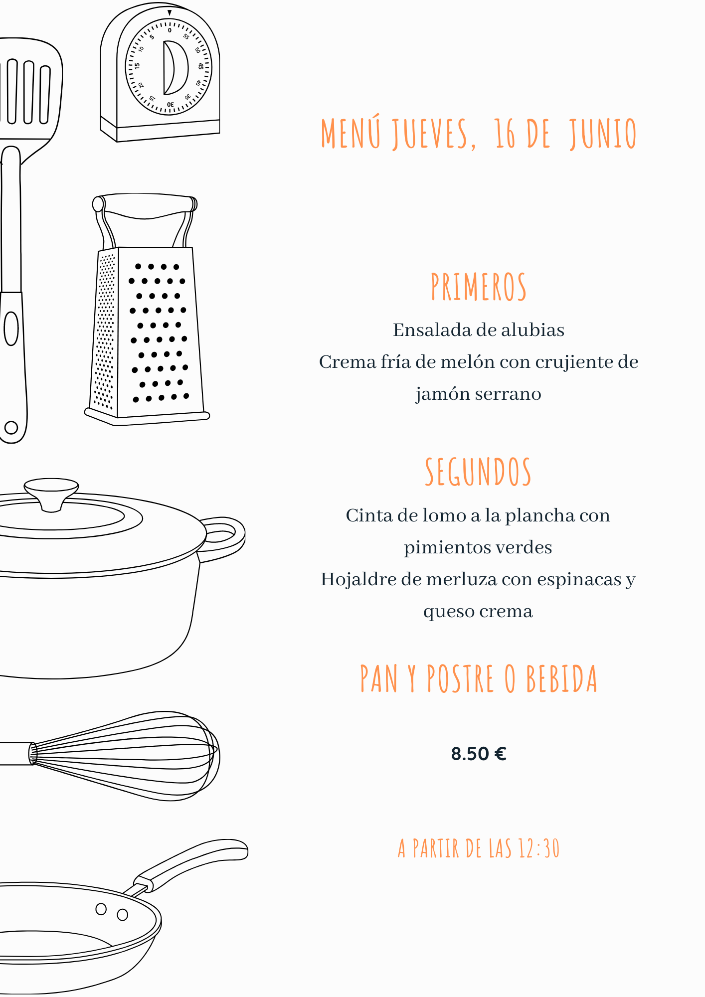 Menú jueves, 16 de junio junio 15, 2022 de Tu Puchero Deja un comentario Comparte esto: Compartir en X (Se abre en una ventana nueva) X Compartir en Facebook (Se abre en una ventana nueva) Facebook Más Compartir en WhatsApp (Se abre en una ventana nueva) WhatsApp Me gusta Cargando...