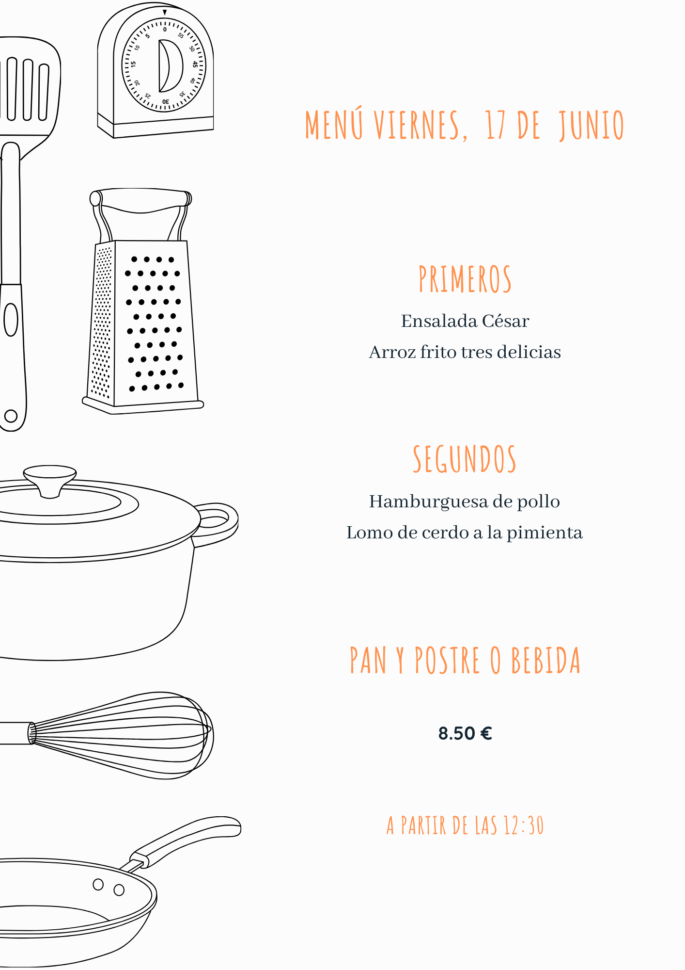 Menú viernes, 17 de junio junio 16, 2022 de Tu Puchero Deja un comentario Comparte esto: Compartir en X (Se abre en una ventana nueva) X Compartir en Facebook (Se abre en una ventana nueva) Facebook Más Compartir en WhatsApp (Se abre en una ventana nueva) WhatsApp Me gusta Cargando...