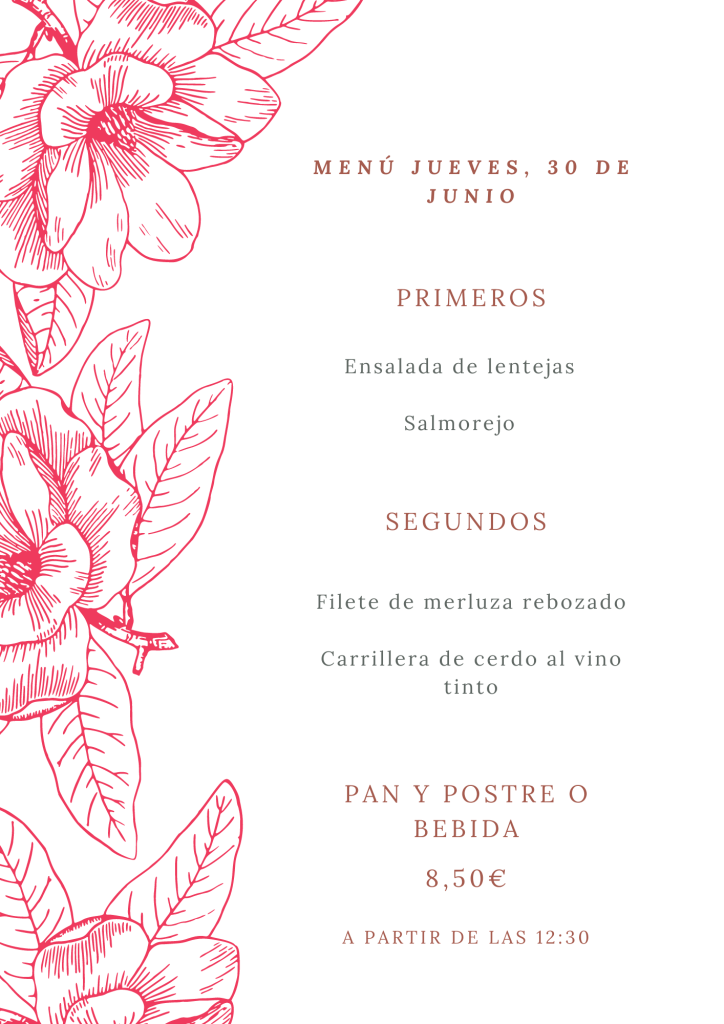 Menú jueves, 30 de junio junio 29, 2022 de Tu Puchero Deja un comentario Comparte esto: Compartir en X (Se abre en una ventana nueva) X Compartir en Facebook (Se abre en una ventana nueva) Facebook Más Compartir en WhatsApp (Se abre en una ventana nueva) WhatsApp Me gusta Cargando...