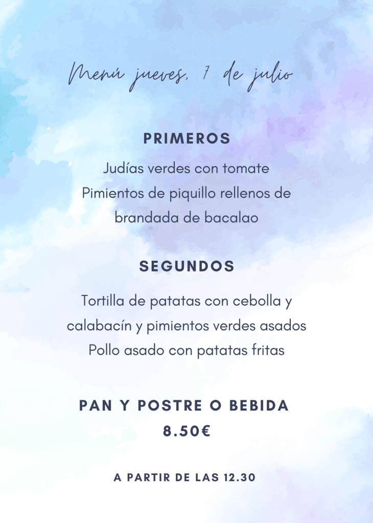 Menú jueves, 7 de julio julio 6, 2022 de Tu Puchero Deja un comentario Comparte esto: Compartir en X (Se abre en una ventana nueva) X Compartir en Facebook (Se abre en una ventana nueva) Facebook Más Compartir en WhatsApp (Se abre en una ventana nueva) WhatsApp Me gusta Cargando...