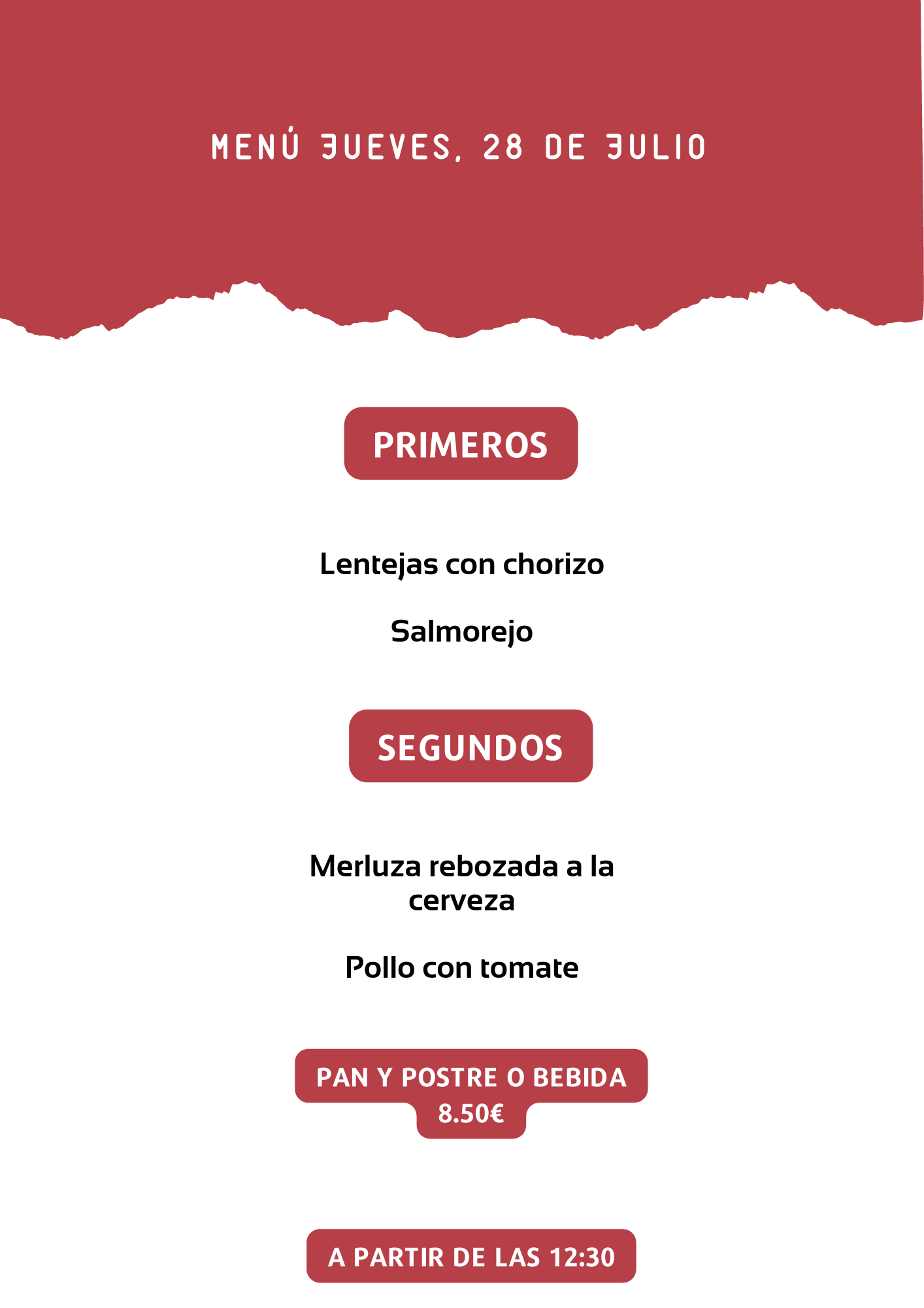 Menú jueves, 28 de Julio julio 27, 2022 de Tu Puchero Deja un comentario Comparte esto: Compartir en X (Se abre en una ventana nueva) X Compartir en Facebook (Se abre en una ventana nueva) Facebook Más Compartir en WhatsApp (Se abre en una ventana nueva) WhatsApp Me gusta Cargando...