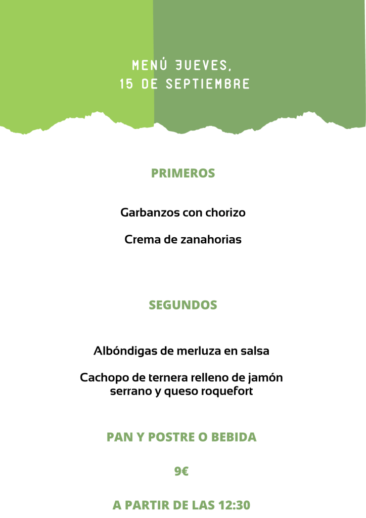 Menú jueves, 15 de Septiembre septiembre 14, 2022 de Tu Puchero Deja un comentario Comparte esto: Compartir en X (Se abre en una ventana nueva) X Compartir en Facebook (Se abre en una ventana nueva) Facebook Más Compartir en WhatsApp (Se abre en una ventana nueva) WhatsApp Me gusta Cargando...