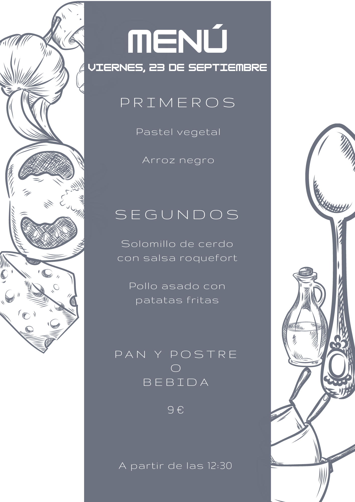 Menú viernes, 23 de Septiembre septiembre 22, 2022 de Tu Puchero Deja un comentario Comparte esto: Compartir en X (Se abre en una ventana nueva) X Compartir en Facebook (Se abre en una ventana nueva) Facebook Más Compartir en WhatsApp (Se abre en una ventana nueva) WhatsApp Me gusta Cargando...