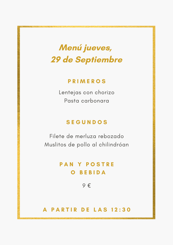Menú jueves, 29 de Septiembre septiembre 28, 2022 de Tu Puchero Deja un comentario Comparte esto: Compartir en X (Se abre en una ventana nueva) X Compartir en Facebook (Se abre en una ventana nueva) Facebook Más Compartir en WhatsApp (Se abre en una ventana nueva) WhatsApp Me gusta Cargando...
