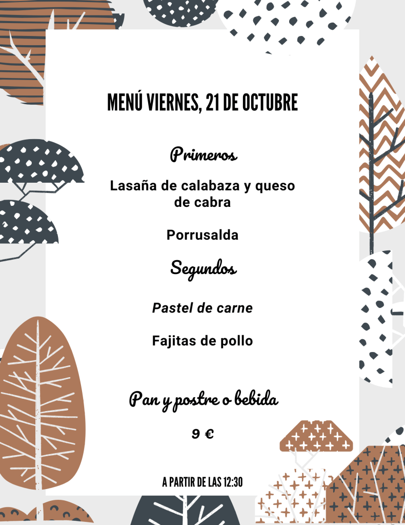 Menú viernes, 21 de Octubre octubre 20, 2022 de Tu Puchero Deja un comentario Comparte esto: Compartir en X (Se abre en una ventana nueva) X Compartir en Facebook (Se abre en una ventana nueva) Facebook Más Compartir en WhatsApp (Se abre en una ventana nueva) WhatsApp Me gusta Cargando...