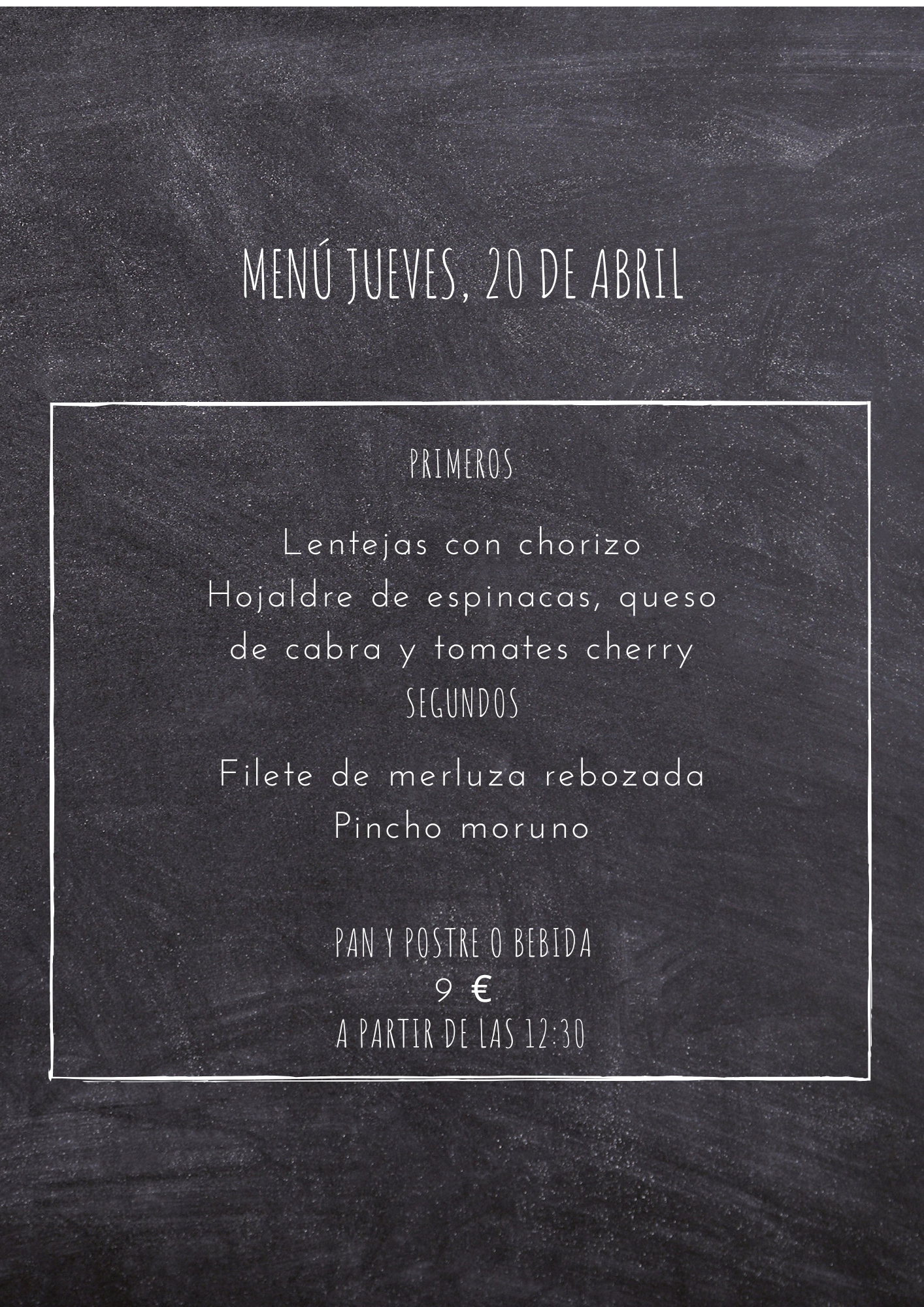 Menú jueves, 20 de Abril abril 19, 2023 de Tu Puchero Deja un comentario Comparte esto: Compartir en X (Se abre en una ventana nueva) X Compartir en Facebook (Se abre en una ventana nueva) Facebook Más Compartir en WhatsApp (Se abre en una ventana nueva) WhatsApp Me gusta Cargando...