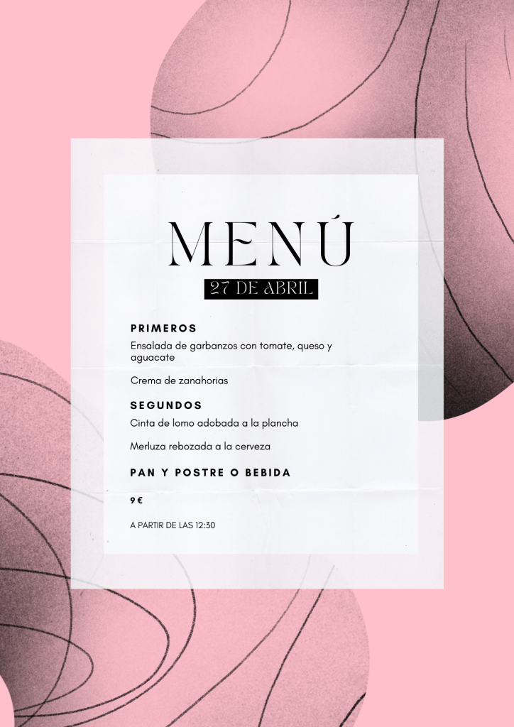 Menú jueves, 27 de Abril abril 26, 2023 de Tu Puchero Deja un comentario Comparte esto: Compartir en X (Se abre en una ventana nueva) X Compartir en Facebook (Se abre en una ventana nueva) Facebook Más Compartir en WhatsApp (Se abre en una ventana nueva) WhatsApp Me gusta Cargando...