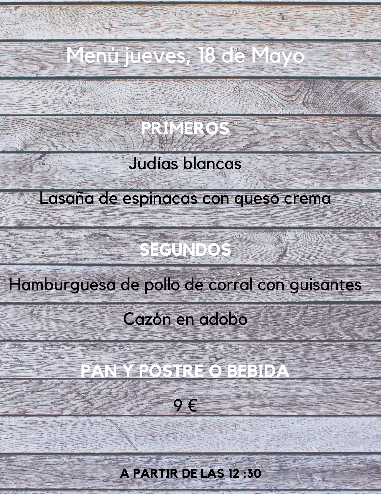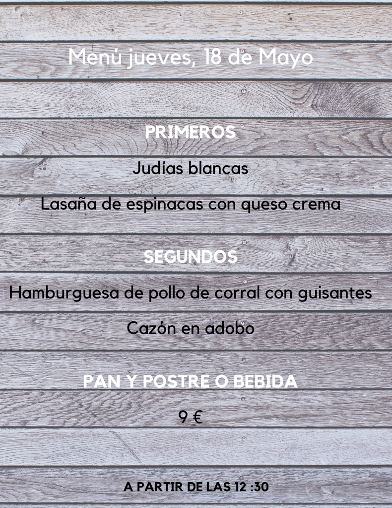 Menú jueves, 18 de Mayo mayo 17, 2023 de Tu Puchero Deja un comentario Comparte esto: Compartir en X (Se abre en una ventana nueva) X Compartir en Facebook (Se abre en una ventana nueva) Facebook Más Compartir en WhatsApp (Se abre en una ventana nueva) WhatsApp Me gusta Cargando...