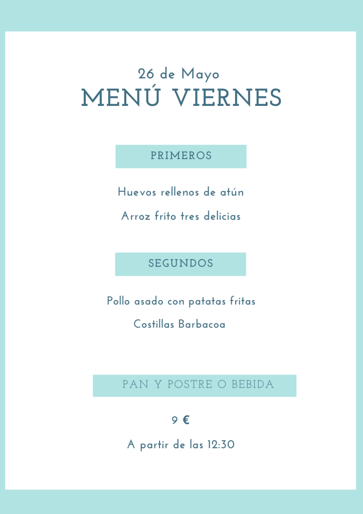 Menú viernes, 26 de Mayo mayo 25, 2023 de Tu Puchero Deja un comentario Comparte esto: Compartir en X (Se abre en una ventana nueva) X Compartir en Facebook (Se abre en una ventana nueva) Facebook Más Compartir en WhatsApp (Se abre en una ventana nueva) WhatsApp Me gusta Cargando...