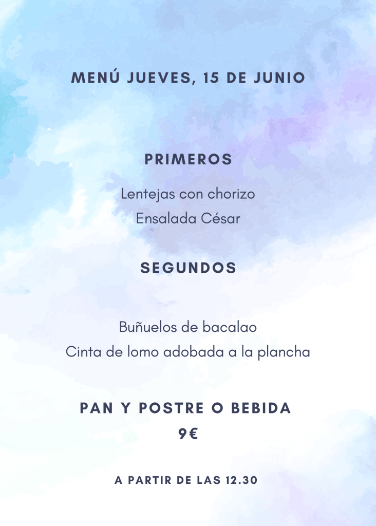 Menú jueves, 15 de Junio junio 14, 2023 de Tu Puchero Deja un comentario Comparte esto: Compartir en X (Se abre en una ventana nueva) X Compartir en Facebook (Se abre en una ventana nueva) Facebook Más Compartir en WhatsApp (Se abre en una ventana nueva) WhatsApp Me gusta Cargando...