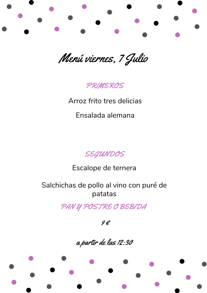 Menú viernes, 7 de Julio julio 6, 2023 de Tu Puchero Deja un comentario Comparte esto: Compartir en X (Se abre en una ventana nueva) X Compartir en Facebook (Se abre en una ventana nueva) Facebook Más Compartir en WhatsApp (Se abre en una ventana nueva) WhatsApp Me gusta Cargando...