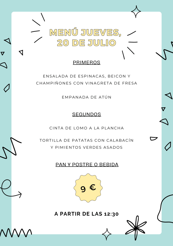 Menú jueves, 20 de Julio julio 19, 2023 de Tu Puchero Deja un comentario Comparte esto: Compartir en X (Se abre en una ventana nueva) X Compartir en Facebook (Se abre en una ventana nueva) Facebook Más Compartir en WhatsApp (Se abre en una ventana nueva) WhatsApp Me gusta Cargando...