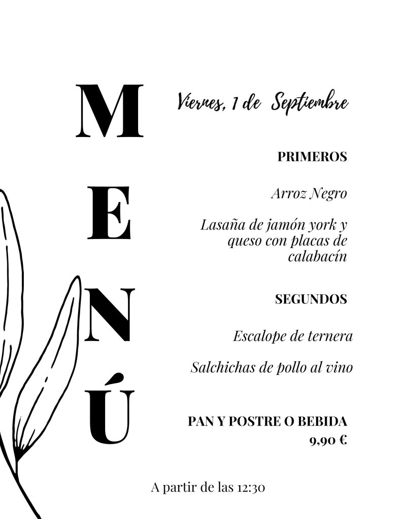 Menú viernes, 1 de Septiembre agosto 31, 2023 de Tu Puchero Deja un comentario Comparte esto: Compartir en X (Se abre en una ventana nueva) X Compartir en Facebook (Se abre en una ventana nueva) Facebook Más Compartir en WhatsApp (Se abre en una ventana nueva) WhatsApp Me gusta Cargando...