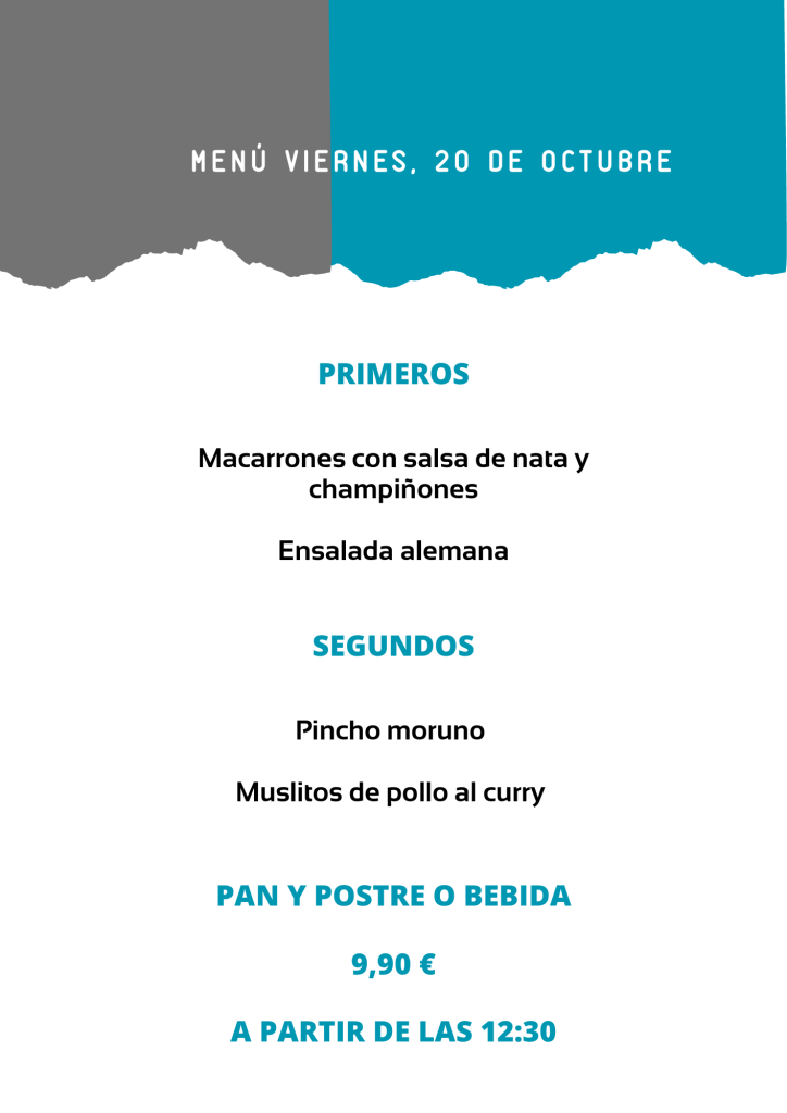 Menú viernes, 20 de Octubre octubre 19, 2023 de Tu Puchero Deja un comentario Comparte esto: Compartir en X (Se abre en una ventana nueva) X Compartir en Facebook (Se abre en una ventana nueva) Facebook Más Compartir en WhatsApp (Se abre en una ventana nueva) WhatsApp Me gusta Cargando...