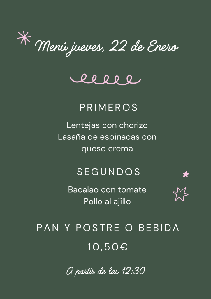 Menú jueves, 22 de Enero enero 21, 2026 de Tu Puchero Deja un comentario Comparte esto: Compartir en X (Se abre en una ventana nueva) X Comparte en Facebook (Se abre en una ventana nueva) Facebook Más Compartir en WhatsApp (Se abre en una ventana nueva) WhatsApp Me gusta Cargando...