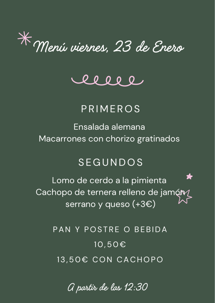 Menú viernes, 23 de Enero enero 22, 2026 de Tu Puchero Deja un comentario Comparte esto: Compartir en X (Se abre en una ventana nueva) X Comparte en Facebook (Se abre en una ventana nueva) Facebook Más Compartir en WhatsApp (Se abre en una ventana nueva) WhatsApp Me gusta Cargando...