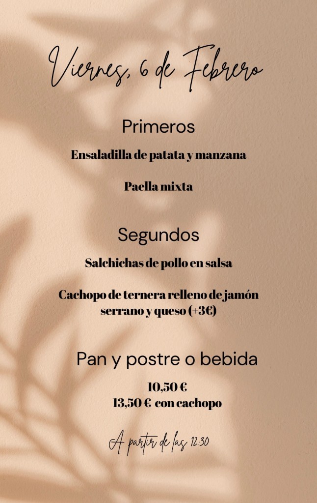 Menú viernes, 6 de Febrero febrero 5, 2026 de Tu Puchero Deja un comentario Comparte esto: Compartir en X (Se abre en una ventana nueva) X Comparte en Facebook (Se abre en una ventana nueva) Facebook Más Compartir en WhatsApp (Se abre en una ventana nueva) WhatsApp Me gusta Cargando...