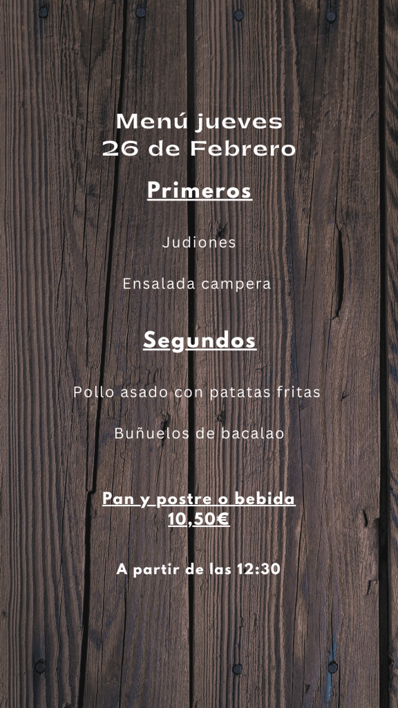 Menú jueves, 26 de Febrero febrero 25, 2026 de Tu Puchero Deja un comentario Comparte esto: Compartir en X (Se abre en una ventana nueva) X Comparte en Facebook (Se abre en una ventana nueva) Facebook Más Compartir en WhatsApp (Se abre en una ventana nueva) WhatsApp Me gusta Cargando...